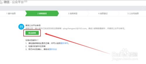 3、再登录邮箱,单击链接启动,成功之后转到下面的提示页,开展“信息登记”工作。此处资料应仔细填妥,手机收到验证码这一项就能等到全部资料填好确认OK了
