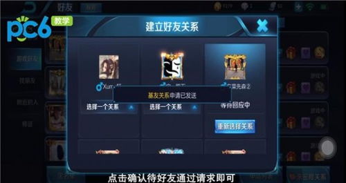 主菜单右上角点击好友图标,选择游戏好友,即可申请双方关系,每种关系只能有一个对象,满600可以获得出生特效,当亲密度满1200和2000的时候还都会升级,并获得专属头像框。(PS:亲密度600以上可以在进入战斗界面显示哟)