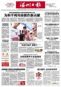 ――温州日报作为市委机关报和报业集团的核心报纸,是温州地区唯一的大报,将紧紧围绕市委的中心工作,当好喉舌,宣传政策,引导舆论,服务人民。