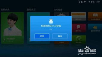 3、U盘插入电视,然后点击打开。