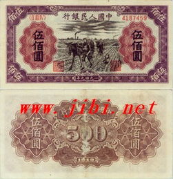 500元人民币是1949年1月发行的一套人民币,到2020年为止只发行了一套。