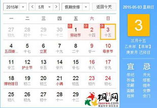 2015年农历三月十五,新历为2015年5月3日星期日